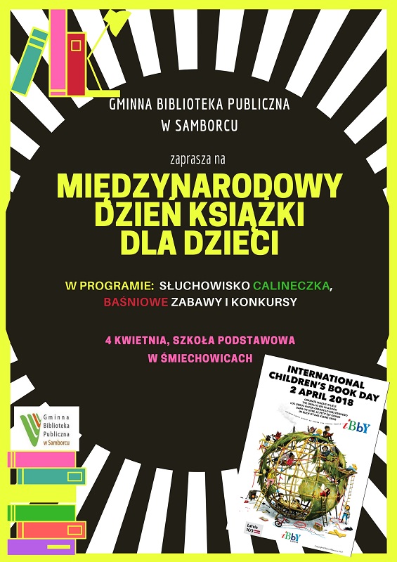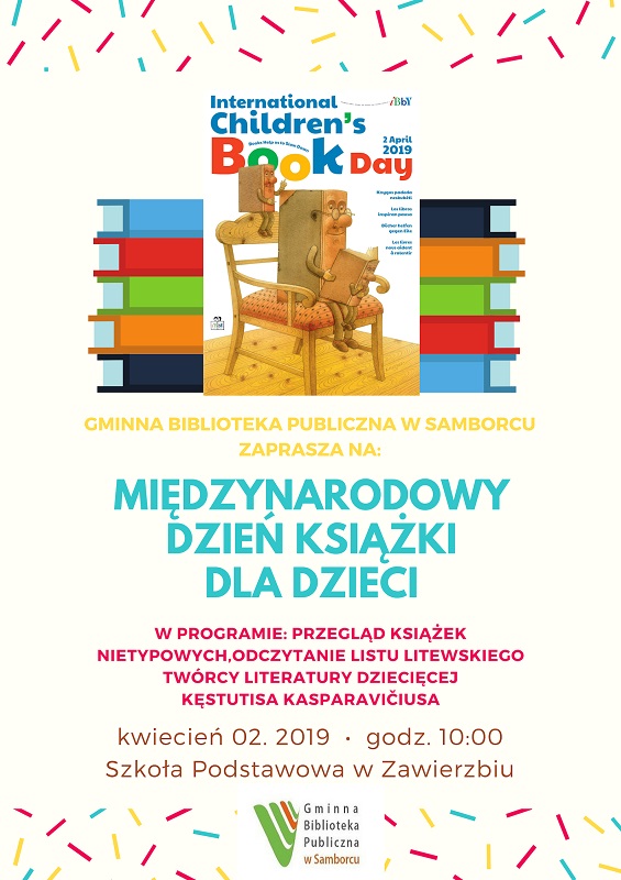 Międzynarodowy Dzień Książki dla Dzieci to święto obchodzone co roku 2 kwietnia, w dzień urodzin duńskiego baśniopisarza Hansa Christiana Andersena.Święto ustanowiono w 1967 roku, aby zwrócić uwagę na potrzeby młodego czytelnika, a także by promować tworzoną dla niego literaturę i grafikę. Co roku inny kraj, zrzeszony w IBBY – Międzynarodowej Izbie ds. Książek dla Młodych, odpowiada za przygotowanie plakatu oraz napisanie listu do dzieci całego świata. Dzień ten ma na celu rozpowszechnienie książek dla dzieci oraz wspieranie czytania przez najmłodszych. Co roku pracownicy biblioteki odwiedzają okoliczne szkoły z terenu naszej gminy, by odczytać list adresowany do dzieci i zapoznać je z najciekawszymi, najnowszymi książkami ze zbiorów naszej biblioteki.