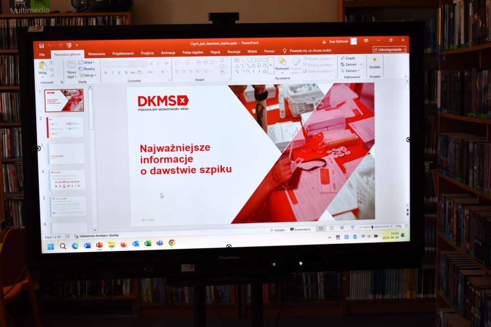 26 czerwca 2025 r. w Oddziale dla Dzieci i Młodzieży odbyło się wyjątkowe spotkanie edukacyjne poświęcone idei dawstwa szpiku, zorganizowane w ramach ogólnopolskiego konkursu „Biblioteka Życia”.